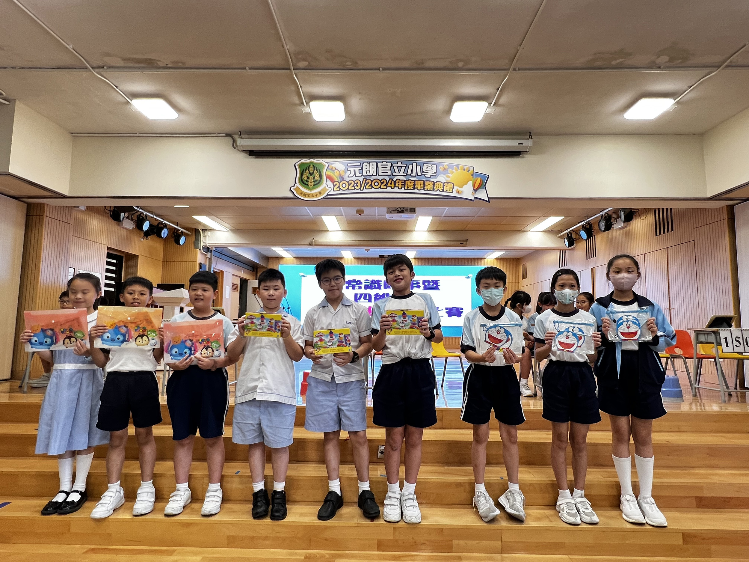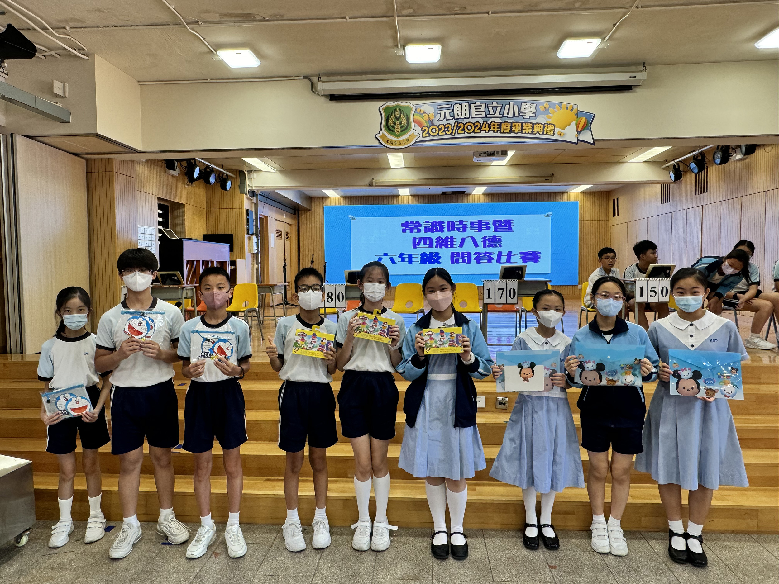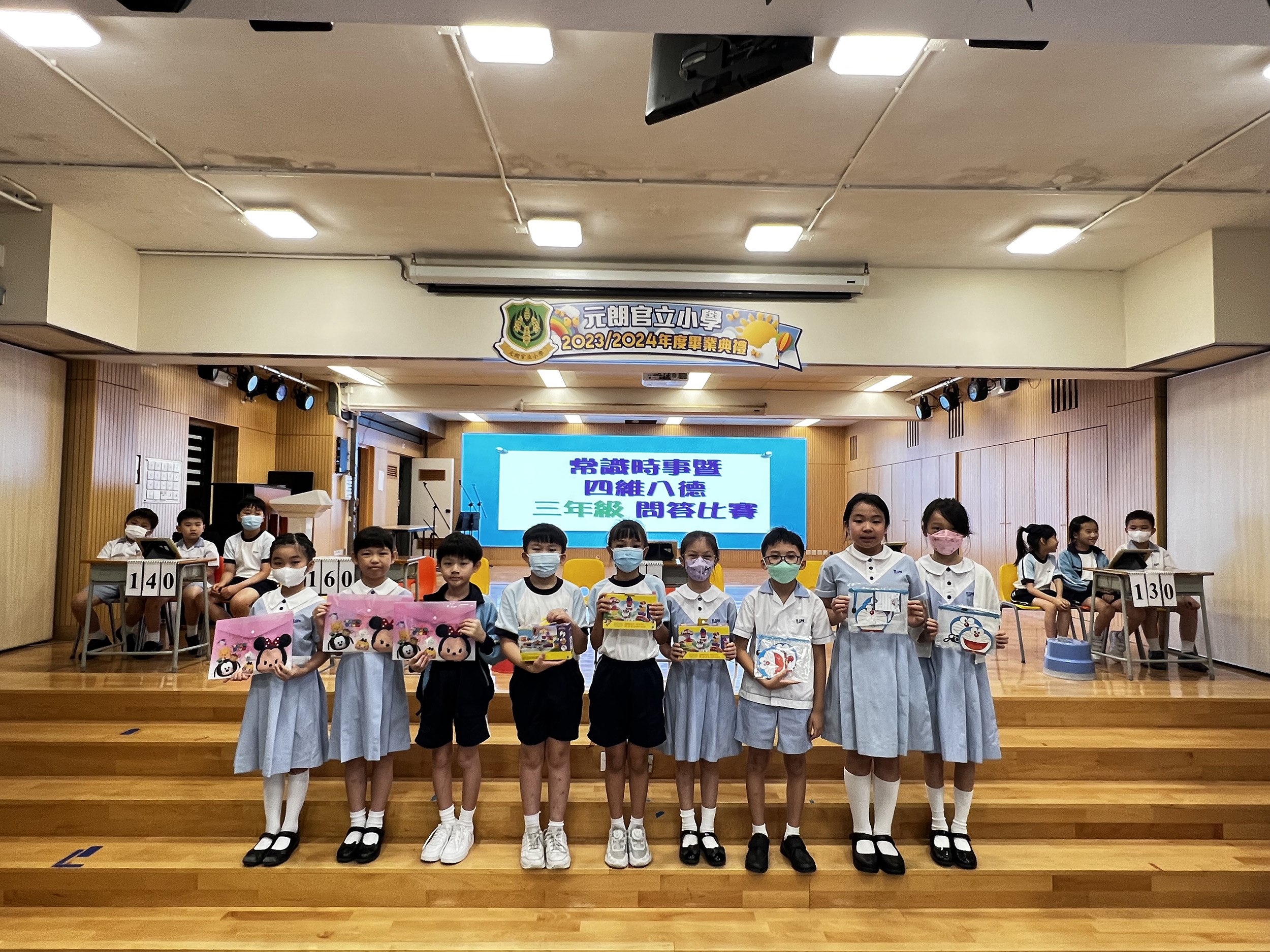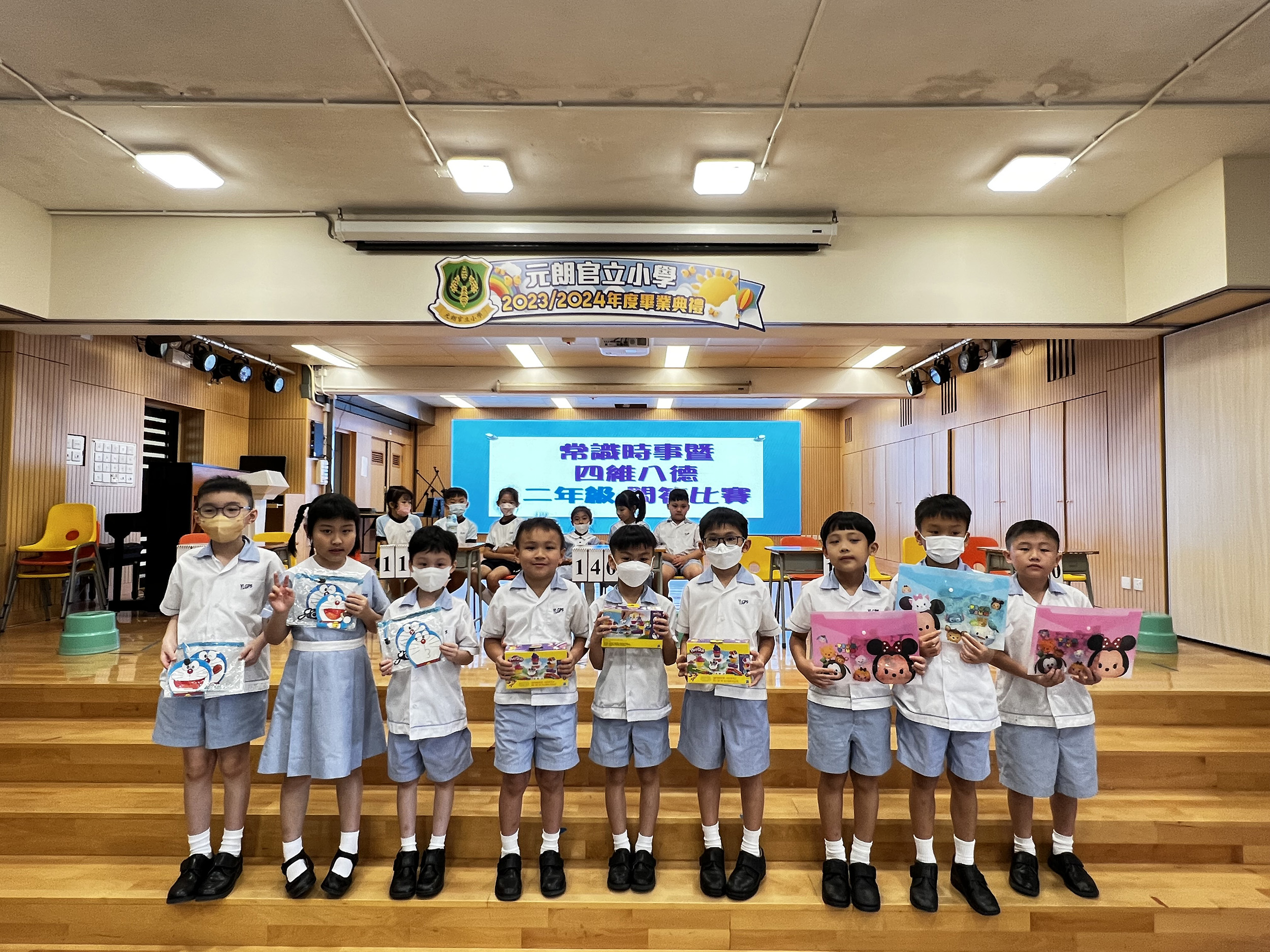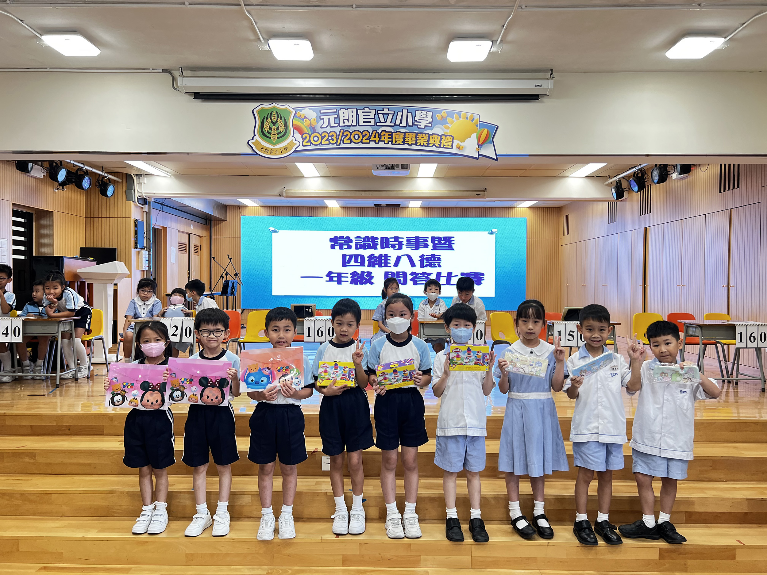 活動名稱:常識暨四維八德問答比賽活動日期:2024年6月28日、7月4、5日活動地點:學校活動簡介:為了培養學生關心社會時事及世界大事,並提升他們對中華文化的認識,加強他們對祖國的歸屬感,本校安排了全校學生進行常識暨四維八德問答比賽。同學們賽前都做足準備、躍躍欲試,每位參賽者都非常認真投入參與,爭取最佳成績。台下同學也踴躍舉手回答觀眾題,積極參與活動。