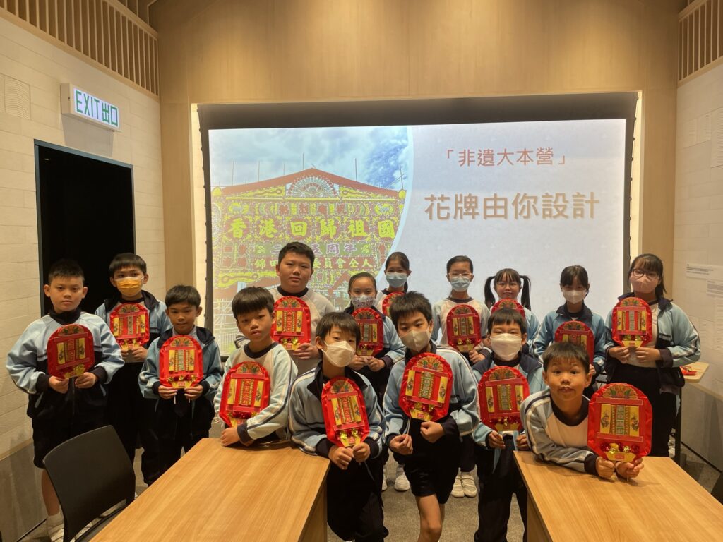 活動名稱:『非遺大本營』工作坊 活動日期:15/11/2023 活動簡介:為了增加學生對香港非物質文化遺產(非遺)的認識和興趣,本校安排了學生參加香港非物質文化遺產中心以「循聲覓道—香港非物質文化遺產」展覽系列為主題的活動,讓學生能透過展覽導賞和「花牌製作工作坊」進行親身的體驗,希望以有趣和互動的方