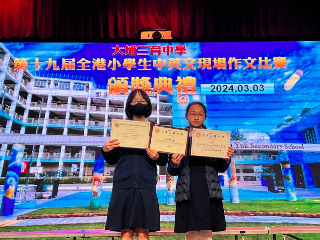活動名稱:全港小學生中英文現場作文比賽 活動簡介:恭喜各位元小同學在大埔三育中學舉辦的「第十九屆全港小學生中英文現場作文比賽」英文作文中獲取優秀成績。元小同學積極踴躍參與,我校更獲得白金獎的殊榮呢!Talented students recognized for their exceptional