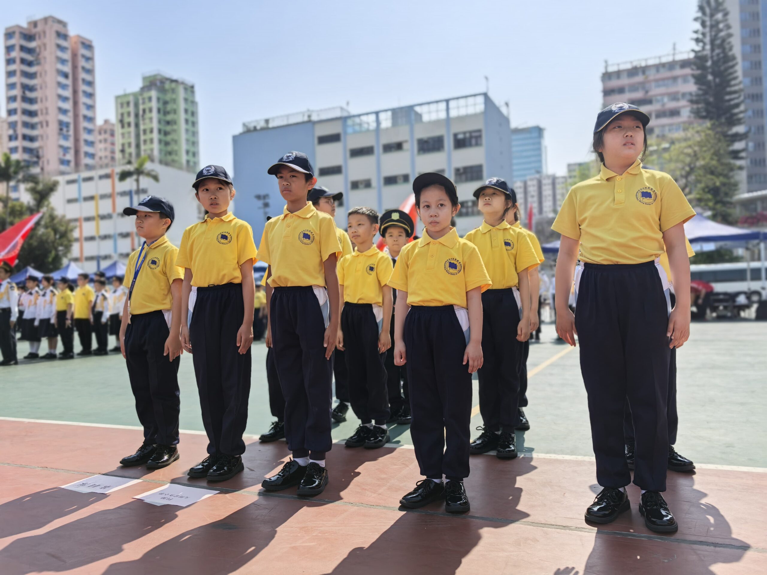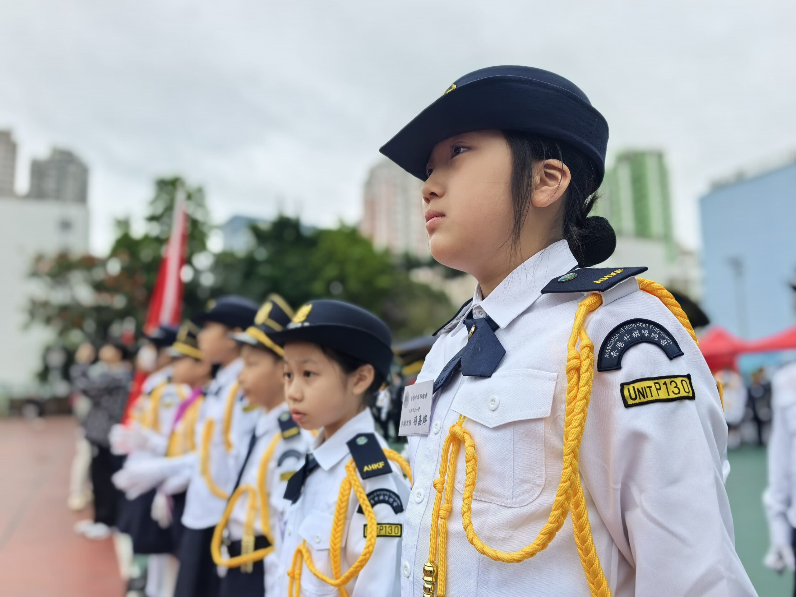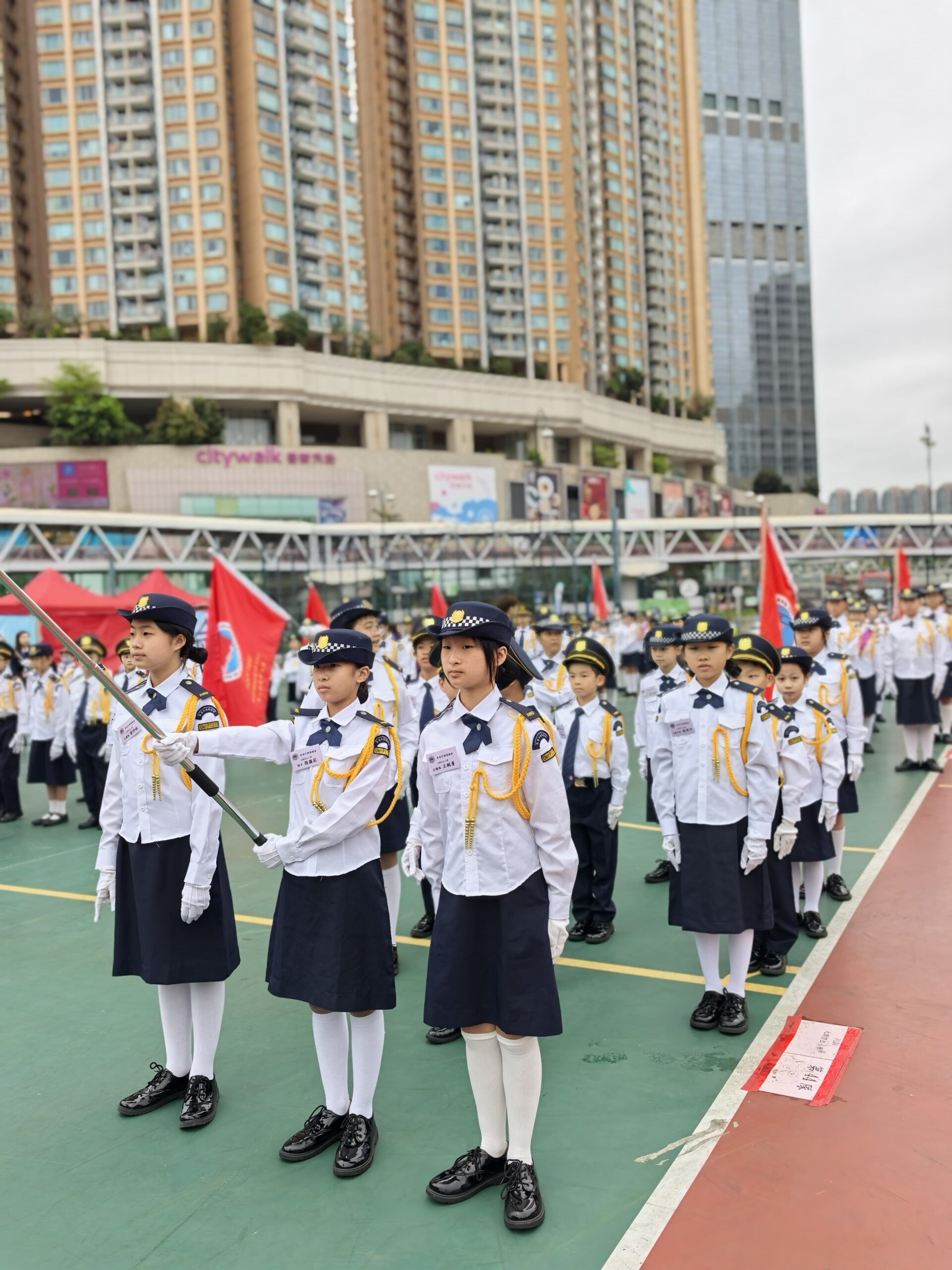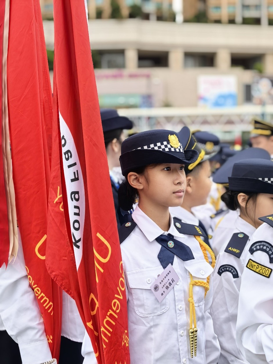 活動地點:荃灣沙咀道遊樂場活動簡介:本校升旗隊隊員於2025年3月15日及22日參與了由香港升旗隊總會主辦的周年檢閱禮綵排活動並於3月29日在荃灣沙咀道遊樂場圓滿完成正式檢閱儀式。活動榮幸邀得教育局副局長施俊輝博士擔任主禮嘉賓,透過檢閱儀式展現升旗隊訓練成果,深化國民教育,弘揚愛國精神。於兩天的綵排過程中,隊員們克服了多變的天氣挑戰,無論是烈日當空或是寒風襲來,均保持高度專注,反覆練習步操動作與隊形轉換。同學們展現出堅毅不拔的精神與嚴謹的紀律性,其專業表現值得讚揚。此次活動不僅為隊員們提供了寶貴的學習經驗,更深化了他們的國民身份認同,充分體現愛國教育的核心價值。