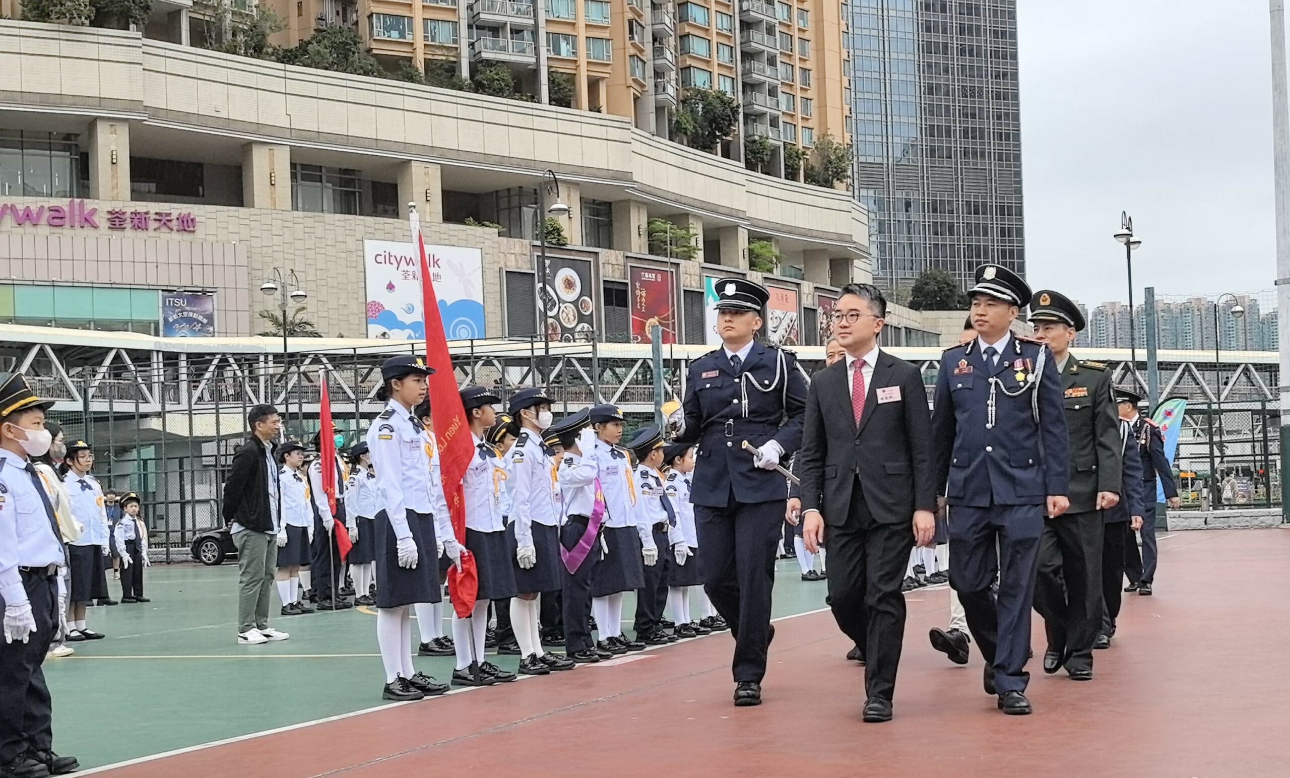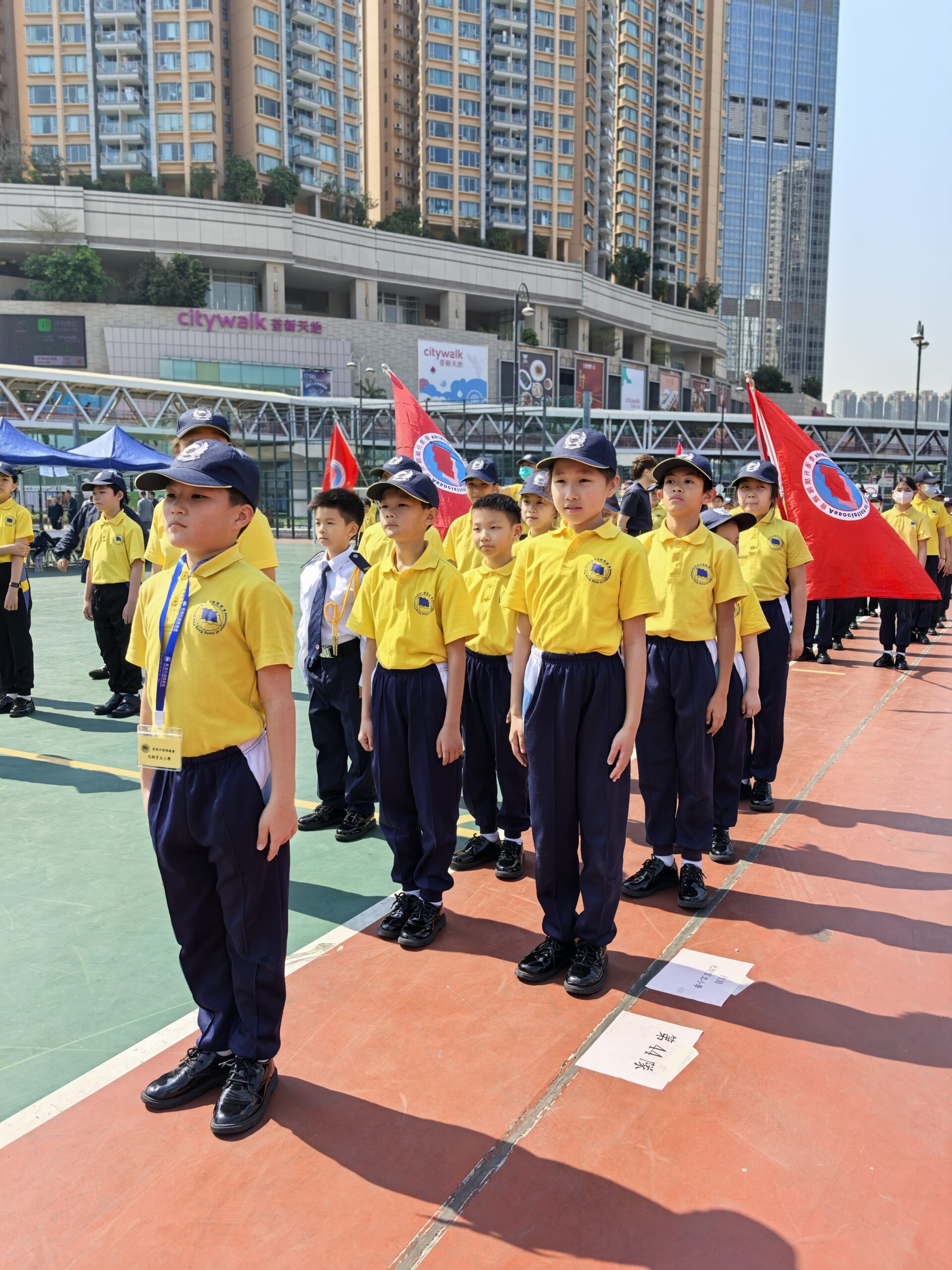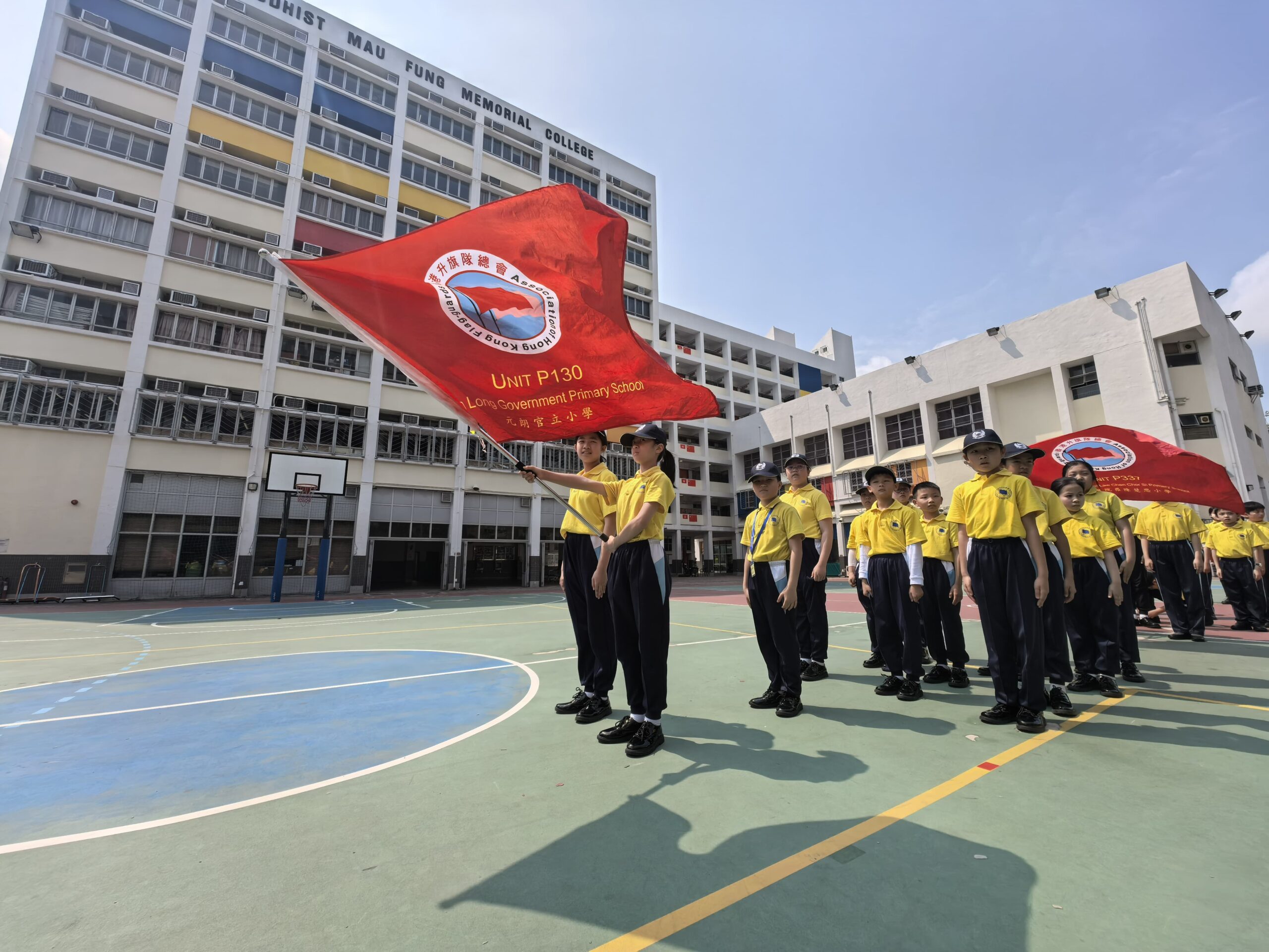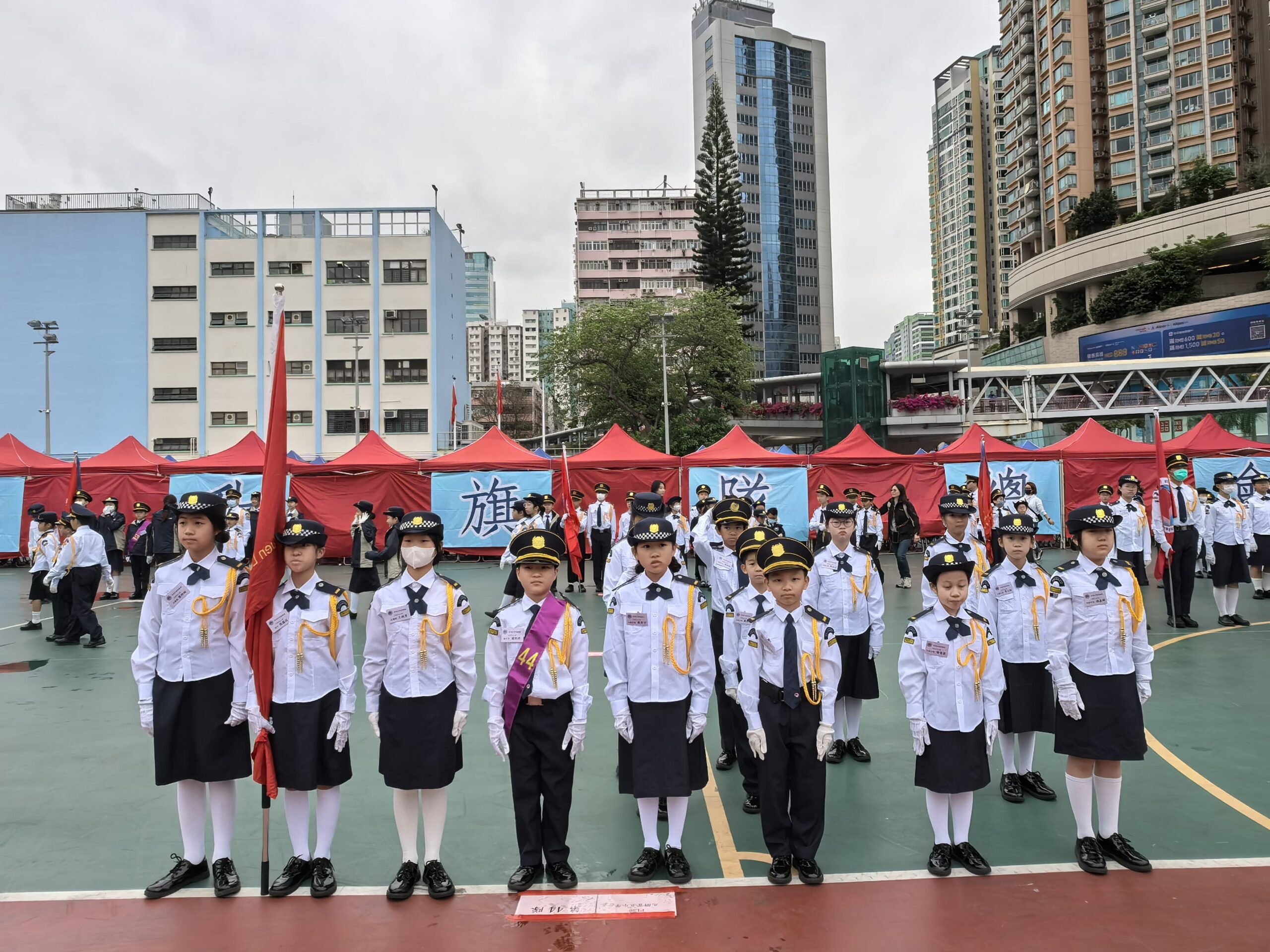 活動地點:荃灣沙咀道遊樂場活動簡介:本校升旗隊隊員於2025年3月15日及22日參與了由香港升旗隊總會主辦的周年檢閱禮綵排活動並於3月29日在荃灣沙咀道遊樂場圓滿完成正式檢閱儀式。活動榮幸邀得教育局副局長施俊輝博士擔任主禮嘉賓,透過檢閱儀式展現升旗隊訓練成果,深化國民教育,弘揚愛國精神。於兩天的綵排過程中,隊員們克服了多變的天氣挑戰,無論是烈日當空或是寒風襲來,均保持高度專注,反覆練習步操動作與隊形轉換。同學們展現出堅毅不拔的精神與嚴謹的紀律性,其專業表現值得讚揚。此次活動不僅為隊員們提供了寶貴的學習經驗,更深化了他們的國民身份認同,充分體現愛國教育的核心價值。